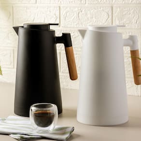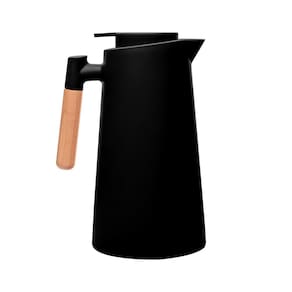 Seu corpo em plástico resistente com acabamento preto fosco contrasta harmoniosamente com o cabo de madeira natural, que garante firmeza e conforto ao manuseio. Ideal para servir café, chá ou água com elegância em casa, no escritório ou em reuniões especiais.