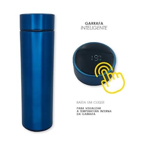01 Garrafa Térmica Medidor Temperatura Digital Squeeze Portátil Azul