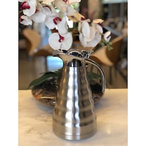 Linda garrafa térmica produzida em Inox com ampola de vidro. Possui um design que contribui com a decoração da mesa, é bastante funcional e conserva a temperatura ideal das bebidas quentes ou frias por até 12 horas. A garrafa possui uma alça para melhor mobilidade, um bico antigotas e uma tampa de rosca com gatilho, o que torna o produto fácil e prático para servir.Para limpar, encha todo o interior da garrafa com água fervente, deixe por até 3 minutos e esvazie em seguida. Para manter bebidas frias, escalde usando água gelada. Especificações:– Modelo: Muller– Cor: Prata– Capacidade: 1,2 litro– Dimensões: 24x15x15cm