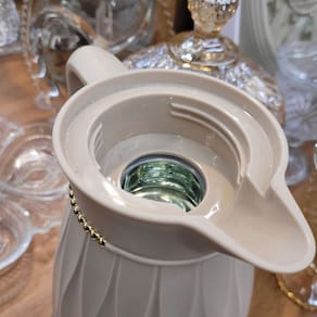 Sirva seu café com elegância e sofisticação com a garrafa térmica Khadija! Com um design luxuoso, esta peça combina tons de bege com detalhes em dourado, trazendo requinte para qualquer ambiente. Ideal para cafés da manhã, reuniões ou momentos especiais, ela é perfeita tanto para uso doméstico quanto corporativo.