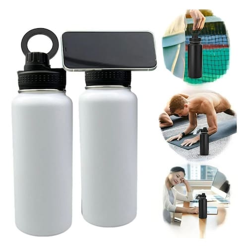 Garrafa térmica a vácuo com suporte magnético para celular 950ml - magsafe - fitness / academia / escritório Agora ficou mais fácil gravar seus treinos, seu esporte favorito ou assistir seus canais prediletos conheça a nova garrafa térmica com suporte para telefone celular / smartphone. Perfeita para levar junto contigo para todo lugar. - garrafa 100% aço inox 304 com tampa, bico e suporte para celular em plástico reforçado; - ajuste seu celular em 360 de giro e 90 de inclinação. Ideal para qualquer ocasião; - possui parede dupla com separação a vacuo de altissima qualidade, garantindo sua bebida gelada por mais de 30 horas e bebida quente por mais de 12 horas; - resistente a altas temperaturas; - possui design a prova de vazamento, com tecnologia drysec nas borrachas de vedação; - perfeito para gravar sua ginástica, exercícios físicos, atividades ao ar livre, viagens, escritório e muito mais. Características: - marca: magsafe - capacidade: 950ml - fabricada em aço inoxidável; - com isolamento térmico a vácuo; - tampa e bico rosqueável removível para higienização , pode ser levada ao congelador e lava louças; - bpa free livre de bisfenol a - livre de Cinza. - dimensões: altura 25 cm x largura 9 cm - peso: 435g - cor: branco Itens inclusos: 1 - garrafa térmica a vácuo magsafe com suporte celular 950ml 1 - anel magnético para celulares que não possui Marca: Não Informado