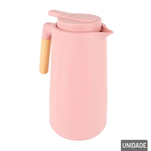 Garrafa Térmica Plástica 1L Rosa Cabo de Ma A Garrafa Térmica de Plástico é a combinação perfeita entre praticidade e elegância. Com capacidade de 1 litro, ela mantém suas bebidas na temperatura ideal por longas horas, seja quente ou fria, graças à sua tecnologia térmica avançada.\nSua estrutura em plástico de alta qualidade, com o design canelado, oferece resistência e durabilidade, tornando-a uma opção leve e fácil de transportar.\nAlém de possuir um Gatilho para servir, possui um Bico Ergonômico. O design sofisticado da garrafa é complementado pelo cabo de madeira, que além de proporcionar um toque rústico e elegante, garante um manuseio confortável e seguro.\nEspecificações:\nMarca : DUARTES\nTipo de material : Madeira, Plástico, Vidro\nCores ou Estampa : Rosa, Bege\nDimensões do Produto : 25,5 X 19 X 13,5 CM\nDimensões da Embalagem : 25,5 X 19 X 13,5 CM\nPeso Bruto (Gramas) : 0.571 Marca: Não Informado