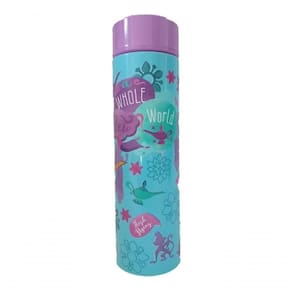 Garrafa térmica no tema Aladdin estampado com princesa Jasmine. Bebida da garrafa tem que ser servida em copo ou caneca, não é possível tomar diretamente da garrafa. Material garrafa: inox.