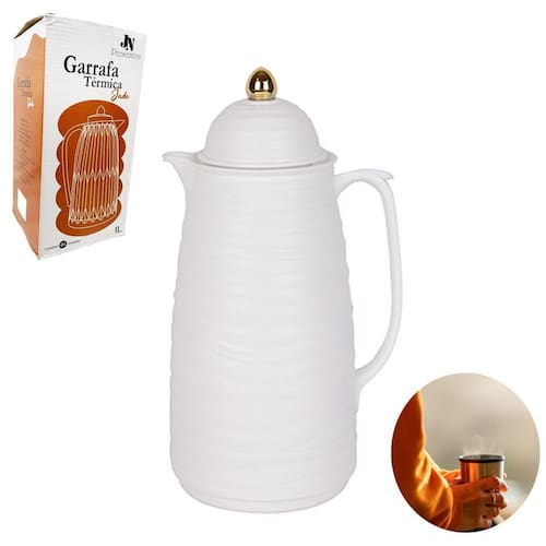 Garrafa térmica resistente 1litro jade branca linha vertical Nome do produto: garrafa térmica resistente 1litro jade branca linha vertical Garrafa term plast c/ampola vid 1ltsref.: nf1663