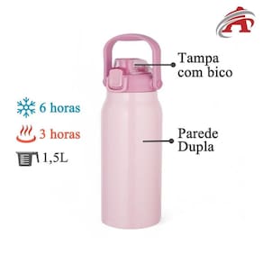 Em suma, a Garrafa Térmica Inox Rosa de 1,5L com Alça e Bico Para Bebidas oferece a combinação perfeita entre funcionalidade e design moderno. Experimente transformar a sua rotina de hidratação e aproveite suas bebidas favoritas com a elegância que você merece. Não perca a oportunidade de adquirir um produto que une praticidade e charme na sua vida diária.