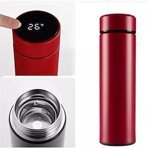Garrafa térmica squeeze medidor temperatura 500ml inox verm