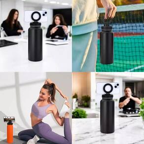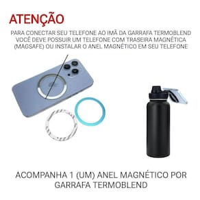 Garrafa térmica a vácuo com suporte magnético para celular 950ml - termoblend - fitness / academia / escritório / fotos / videos Agora ficou mais fácil gravar seus treinos, seu esporte favorito ou assistir seus canais prediletos conheça a nova garrafa térmica com suporte para telefone celular / smartphone. Perfeita para levar junto contigo para todo lugar. - garrafa 100% aço inox 304 com tampa, bico e suporte para celular em plástico reforçado; - ajuste seu celular em 360 de giro e 90 de inclinação. Ideal para qualquer ocasião; - possui parede dupla com separação a vacuo de altissima qualidade, garantindo sua bebida gelada por mais de 24 horas e bebida quente por mais de 12 horas; - resistente a altas temperaturas; - possui design a prova de vazamento, com tecnologia drysec nas borrachas de vedação; - perfeito para gravar sua ginástica, exercícios físicos, atividades ao ar livre, viagens, escritório e muito mais. Características: - marca: termoblend - capacidade: 950ml - fabricada em aço inoxidável; - com isolamento térmico dupla camada a vácuo; - tampa e bico rosqueável removível para higienização , pode ser levada ao congelador e lava louças; - bpa free livre de bisfenol a - livre de Cinza. - dimensões: altura 25 cm x largura 9 cm - peso: 435g - cor: preto Itens inclusos: 1 - garrafa térmica a vácuo termoblend com suporte celular magsafe 950ml 1 - anel magnético instalar em celulares que não possui magsafe ou capinhas Marca: Não Informado