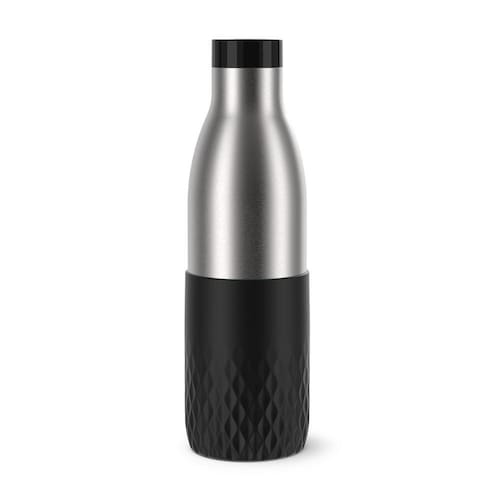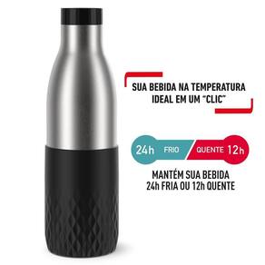 Sua bebida na temperatura ideal com apenas um ""clic"" usando a Garrafa Térmica Tefal Bludrop Preta 700ml, que mantém sua bebida por até 24h fria ou 12h quente. Esta garrafa, feita de aço inoxidável durável com acabamento em silicone, não só oferece estilo, mas também muito mais firmeza e segurança no seu dia a dia. Design feito 100% à prova de vazamentos, torna o transporte fácil e sem preocupações. Botão abre e fecha fácil com apenas um ""clic"", centralizado na tampa para não entrar em contato com a sua bebida. Diferenciais: - Mantém sua bebida 24h fria ou 12h quente. - Abre fácil, com apenas um ""clic"" - À prova de vazamentos. - Acabamento em silicone, muito mais firmeza. - Compatível com máquina de lavar louças. - Aço inoxidável: Material com isolamento térmico e resistente. - Fácil de limpar: Tampa totalmente desmontável. Desfrute da praticidade e elegância, garantindo que sua bebida esteja sempre na temperatura ideal em um ""clic"" com a Garrafa Térmica Tefal Bludrop Preta de 700ml.