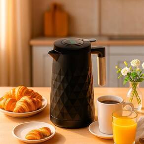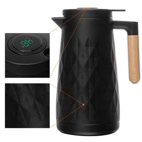 Garrafa Térmica Preta com Termômetro Digital e Cabo de Madeira New Diamond 1L - Lyor 220037