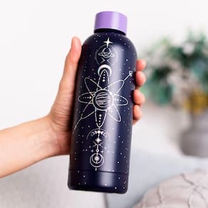 Garrafa Termica Universo Com a nossa Garrafa Térmica Universo, as suas pausas para hidratação se transformarão em verdadeiros momentos de contemplação. Apostando no azul-marinho e no lilás e apresentando uma estampa com efeitos holográficos, essa lindeza conta com uma capacidade para 530 ml e mantém sua bebida fria por até 16 horas e quente por até 6 horas.