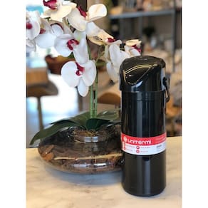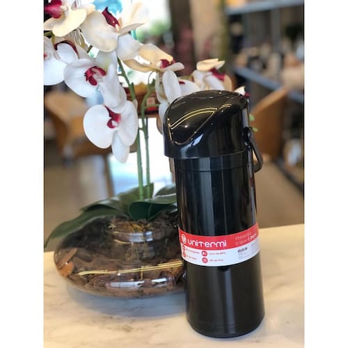 Garrafa Térmica Verona 1L preta Unitermi A Garrafa Térmica M Verona Pressão de 1 litro é a escolha perfeita para manter suas bebidas favoritas quentes ou frias por um longo período. Com seu design prático e funcional, é adequada para café, chá, suco e outras bebidas.Com a função de pressão, ela garante um melhor desempenho na conservação da temperatura, mantendo seu café quente e seu suco frio por horas. Com capacidade de 1 litro, é ideal para servir várias xícaras ou copos sem a necessidade de reposição constante. • Medidas do Produto Embalado (Comprimento x Largura x Altura): 16 x 12 x 32 cm • Medidas do Produto (Comprimento x Altura): 16x32 cm • Peso da Embalagem: Aproximadamente 618g • Modelo: Garrafa Térmica M Verona Pressão 1L p/ Café Chá Suco • Marca: Unitermi • EAN do Produto: 7898955019177 • Material: Plástico • Validade: Indeterminada