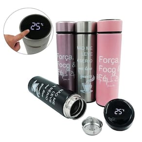 Garrafa Termômetro Térmica Inox Display Led A Vácuo Rosa Metálico Descrição: Nossa Garrafa térmica além de ser super elegante e inovadora mantém a temperatura do liquido, ainda possui um termômetro na tampa, com tela de Led, onde você pode sempre verificar a temperatura da sua bebida tocando na tela. A Garrafa mantém 12 horas de água quente ou fria, e possui um sistema que impede vazamento Perfeita para todos os momentos, viagens, esportes, trabalho e escola