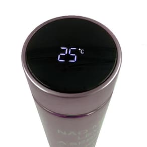 Importante: -Termômetro está na tampa e precisa estar em contato com líquido para aferir com mais precisão. Caso a garrafa não esteja completamente cheia, aconselha-se virar a garrafa para uma medição mais exata.