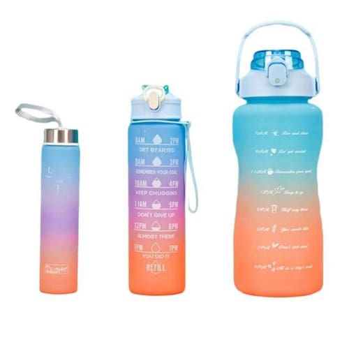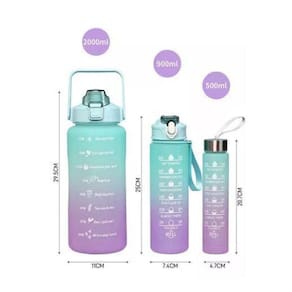 Kit 3 Garrafas Squeeze Anti Vazamento - o companheiro perfeito para quem quer manter-se hidratado durante todo o dia Com três tamanhos diferentes para escolher - 2 litros, 900 ml e 300 ml - você pode escolher o tamanho certo para qualquer ocasião, desde atividades físicas até viagens e trabalho.Com uma tampa articulada fácil de abrir com um clique e uma alça resistente e prática, é fácil levar a garrafa com você onde quer que vá.Além disso, a garrafa é feita de um material premium resistente, tornando-a durável o suficiente para suportar qualquer aventura. A garrafa também possui marcações para ajudá-lo a acompanhar seu consumo diário de água, além de frases motivacionais para inspirar você a continuar bebendo água ao longo do dia.Com cores em dois tons degradê, o design anatômico da garrafa se encaixa confortavelmente em suas mãos. E para tornar esta oferta ainda mais especial, ela vem com adesivos 3D e 2D para personalizar sua garrafa do jeito que quiserA garrafa possui marcações para que você possa acompanhar o seu consumo de água diário e frases motivacionais.- Cores em 2 tons degradê - Material premium resistente;- Tampa articulada com abertura em um clique;- Alça resistente e prática;- Formato anatômico para mãos;- BPA Free;Capacidade:2000 ml / 2 Litros900 ml300mlDimensões: 32cm altura x 10 cm largura Itens Inclusos:1x Garrafa 2 Litros;1x Garrafa 950ml1x Garrafa 300ml1x Cartela de Adesivos 3D1x Cartela de Adesivos 2D2x Canudos1x Bico rígido1x Bico flexívelAdequado para ginástica, esportes, escritório e quaisquer atividades de lazer ao ar livreEscala para medir o seu consumo diário de águaTrava de segurança: Uma chave para abrir a tampa, mais conveniente para beber, evitando vazamento de água causada por toque acidental. Marca: Vs360