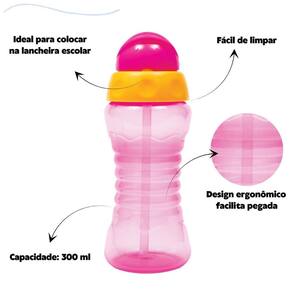 Garrafinha fresh buba infantil 300 ml com canudo retrátil silicone extra Cor: rosa Se você está procurando uma maneira fácil e segura de ajudar seu filho a começar a beber líquidos sozinho, a garrafinha fresh da buba é a escolha perfeita com um canudo retrátil e tampa higiênica, seu filho pode aprender a beber sem derramar. O canudo de silicone macio e higiênico é confortável para o seu filho beber, e a garrafinha tem capacidade de 300ml, o suficiente para as necessidades dele.