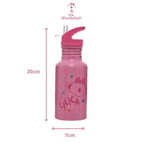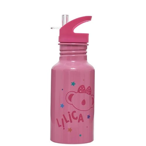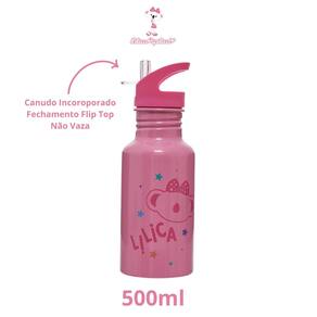 Garrafinha Térmica Infatil Lilica Ripilica Escolar Alumínio Cor Rosa com Canudo Fechamento Trava Flip Top 500ml Água Suco Garrafa de Alumínio Lilica Ripilica 500ml - Qualidade e Segurança para a Rotina Escolar