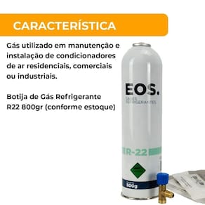 Gás Refrigerante R22 Características do produto: - Gás utilizado em manutenção e instalação de condicionadores de ar residenciais, comerciais ou industriais. O gás R22 é um dos principais componentes utilizados em aparelhos de ar condicionado, especialmente em eletrodomésticos de ar e ventilação. Ele é classificado como um gás refrigerante e desempenha um papel fundamental no funcionamento adequado desses equipamentos.