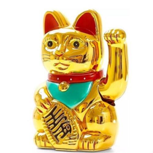 Gato da sorte maneki neko dourado japones 13cm - plástico