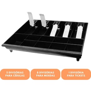 - 8 divisórias para moedas e 1 para tickets