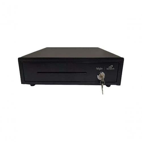 A Gaveta de Dinheiro para PDV Elgin GD-56M é indicada para checkouts e recebimento de pagamentos em diversos tipos de estabelecimentos. Oferece robustez e segurança com abertura manual por chave ou elétrica por pulso, além de mecanismo de emergência. Sua base em aço pintado na cor preta e módulo interno em poliestireno de alto impacto com divisões para notas e moedas garantem organização no caixa. A fenda frontal permite inserir cheques e documentos sem abrir a gaveta, mantendo-os fora de vista. A Elgin é uma marca reconhecida no segmento, oferecendo 3 anos de garantia neste produto.