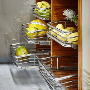 As gavetas multiuso de aço inox facilitam a organização em diferentes ambientes, como áreas de serviço e cozinhas, podendo serem utilizadas para guardar produtos de limpeza, mantimentos e até mesmo como fruteira. O design moderno conta com corrediças laterais e acabamento em alto brilho, dando um toque ainda mais especial ao produto. Por ser produzida no modelo aramado, a gaveta deslizante permite a circulação de ar fazendo com que os itens armazenados tenham maior durabilidade.