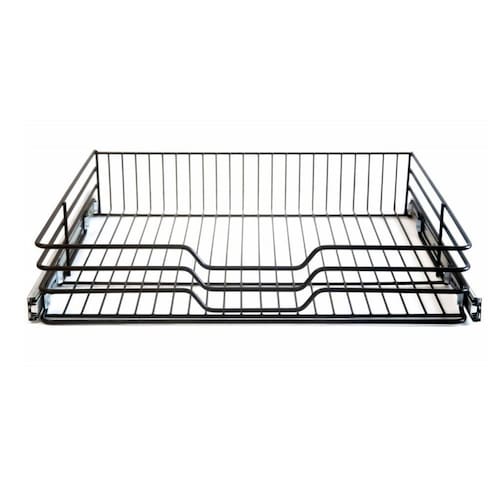Gaveta fruteira preto mod 600 com trilhos 57x11x45cm Gaveta Fruteira Este produto está disponível em aço preto. Tem toda sua estrutura em arame de 6mm. Acompanha trilhos telescópicos zincados, que não entram na do produto. Medidas totais: 570x110x450mm - Mód 600mm Código preto: 2473 Ean: 7896969624738
