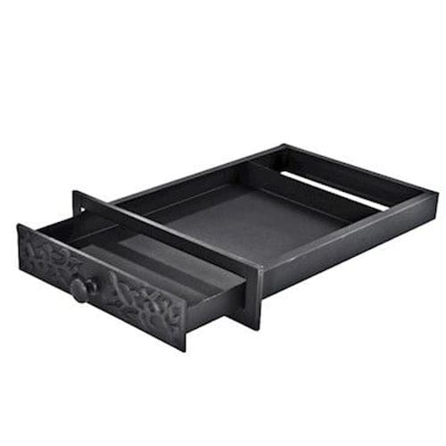 Gaveta cinzeiro com a frente em ferro fundido e a gaveta em aço carbono.