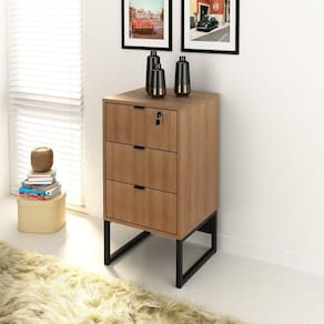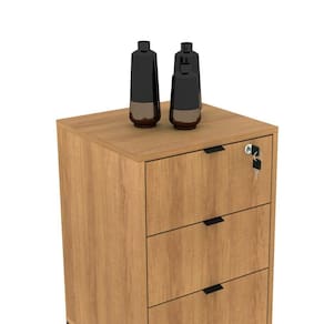 Características: Fabricado em MDP 15 mm 3 Gavetas Pés tubular Acabamento pintura UV Capacidade suportada: 5Kg no tampo e 3Kg cada gaveta.