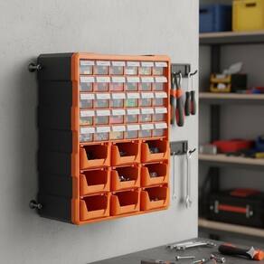 Ideal para armazenar parafusos, buchas, pregos, peças pequenas, acessórios e materiais diversos.