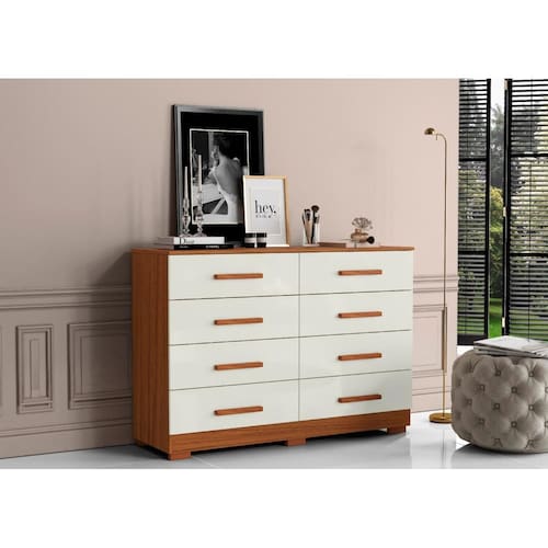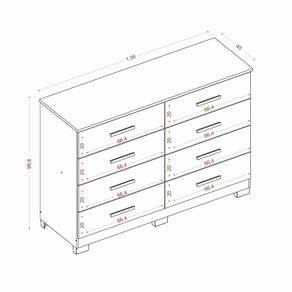 Cômoda 08 gavetas. Produzido em MDP 12mm e 15mm de espessura, proporcionando resistência e durabilidade. Amplo espaço interno, garantindo maior firmeza ao móvel. Puxadores de MDF. Acabamento em verniz alto brilho, garantindo a conservação do móvel, além de manter o brilho constante oferece ao móvel beleza, resistência e durabilidade prolongando a vida útil do produto.