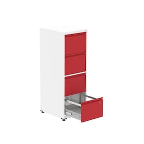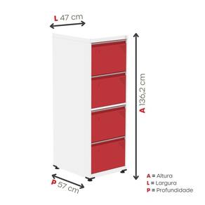 Gaveteiro Arquivo para Escritório em Aço 4 Gavetas Branco/Vermelho - Cinza