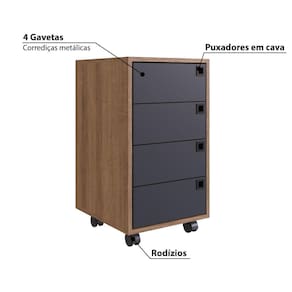 Ter um escritório completo, com móveis adequados e o sonho de muitos profissionais. Imagina ter um espaço produtivo, funcional e prático, além de belo e cheio de estilo e sofisticação. O Gaveteiro para ser colocado ao lado da mesa, onde todos os documentos estarão muito bem guardados e organizados. De estrutura baixa, conta com 4 Gavetas e rodízios para facilitar o seu dia a dia. Uma peça fundamental para ter um ambiente organizado. Estrutura é com MDP, fornecendo melhor resistência à empenamentos, impactos e maior estabilidade. Para um ambiente moderno é necessário escolher móveis arrojados, únicos, que irão impressionar logo à primeira vista.
