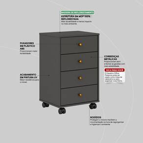 Com design linear, ele pode compor qualquer ambiente já decorado e dar um toque de modernidade. E tem mais! O Gaveteiro Office Presence vem com rodízios, que facilitam a movimentação na hora de reorganizar e limpar o ambiente.