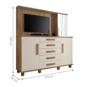 Feito em MDP/MDF, com puxadores em MDP, gavetas e portas.