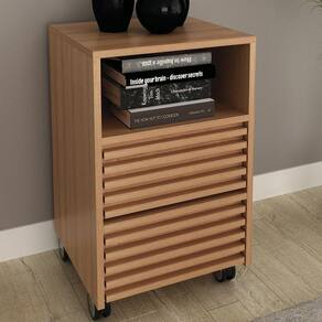 Gaveteiro com Rodízio e 2 Gavetas Ripado ME4175, ideal para inovar a sua decoração com toque luxuoso e ao mesmo tempo refinado, Estrutura em MDP de 15mm, proporcionando maior durabilidade e resistência a peça, contando com acabamento revestido em BP (Semi - Brilho). Composto por 2 gavetas em detalhe ripado com corrediças telescópicas que suportam até 3 kg cada, 1 prateleira possibilitando a disposição de decorações e demais objetos e 4 rodízios. Perfeita para deixar seu ambiente produtivo, proporcionando uma ambientação elegante e com acabamentos sofisticados. Este móvel chegará na sua casa separado em 1 volume.