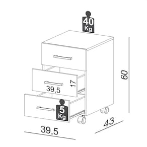 Peso Suportado: 40 Kg no tampo e 5 Kg por gaveta.