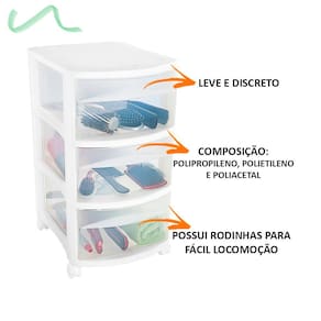 Olá, seja bem-vindo a Casa Meta Shop!Temos o objetivo de lhe ofertar uma grande variedade de produtos para Casa e Decoração. Sempre procuramos garantir qualidade e um ótimo atendimento no pré e pós venda gerando a melhor experiência para você. Assim estabelecendo uma relação de confiança! Nosso processo de embalagem garante uma entrega rápida e segura, que só a Casa Meta garante.GAVETEIRO MÉDIOO Gaveteiro é a melhor forma manter qualquer ambiente organizado. Nele é possível guardar diversos utensílios como roupas, sapatos, documentos, acessórios, livros e o que mais você quiser. Possui rodinhas para fácil locomoção, além de ser leve e discreto.CARACTERÍSTICAS:- Cor: Cristal- Contém 3 gavetas- Fácil de limpar- Composição: Polipropileno, polietileno e poliacetalMEDIDAS:41,5 x 31,3 x 54,3 cm*Imagem meramente ilustrativa. Produtos de decoração não inclusosQualquer dúvida estamos a disposição!