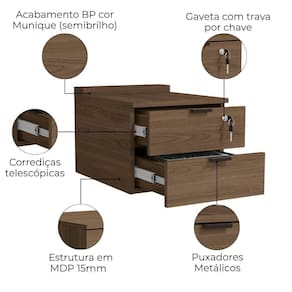 Gaveteiro para Mesa Frame com 2 gavetas, ideal para otimizar organização em ambientes corporativos. Produzido em MDP 15 mm com acabamento BP (semibrilho), equipado com corrediças telescópicas nas duas gavetas, sendo uma delas com tranca e chave para armazenamentos seguros. Design compacto, exclusivo para fixação em mesas da linha Frame (fixação feita por parafusos). Este móvel chegará em sua casa separado em 01 volume.