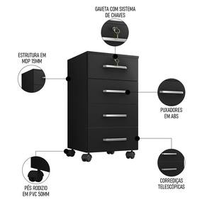 O Gaveteiro Escritório 4 gavetas Com Rodízios Kit 2 Gávea Preto Trama da Móveis Leão é a solução ideal para manter seu escritório organizado e funcional.