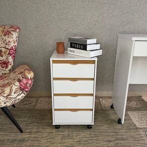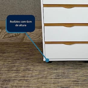 Destaques: - 04 gavetas com corrediças metálicas; - 04 rodízios; - Gavetas com sistema de abrir e fechar sem puxadores.