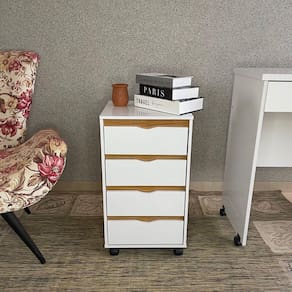 Versátil, ele é ideal tanto como gaveteiro em escritórios e áreas de trabalho quanto como mesa de cabeceira, trazendo funcionalidade e estilo a qualquer espaço.