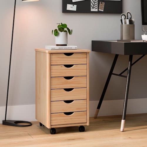 Seja para guardar documentos, material de artesanato, maquiagem ou acessórios, suas seis gavetas espaçosas oferecem o lugar ideal para cada item. A beleza natural da madeira de pinus adiciona um toque de aconchego e estilo a qualquer ambiente.
