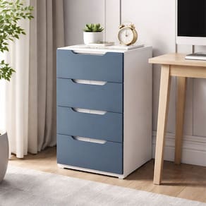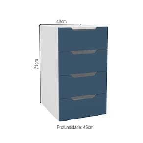 O(a) Gaveteiro Madri 4 Gavetas Azul/Branco - Politorno é produzido em MDP na escala de brilho Semi-Fosco, e possui um grau de dificuldade de montagem: Médio.