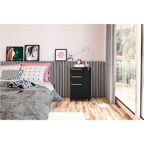Características: Gaveteiro Modelo: Maia Matéria Prima: MDP 15mm, Costa: MDF 3mm, Fundo de Gaveta: MDF 3mm Tipo de Revestimento: UV Tex Tipo de Acabamento: Fosco Quantidade de Gavetas: 03 sendo 1 com Chave Material das Corrediças: Metálicas Quantidade de Puxadores: 03 Material dos Puxadores: Plástico Quantidade de Pés: 04 Produto Suporta até: 10Kg no Tampo e 3Kg por Gaveta