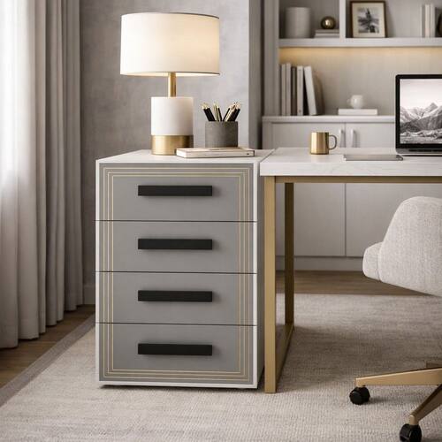 Gaveteiro para Escritório 4 Gavetas Valência Cinza/Branco