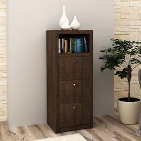Armário arquivo de pasta suspensa para escritório Tecnomobili ME4118, possui 3 gavetas com amplo espaço para colocar pasta suspensa e um nicho para guardar objetos, material em MDP, acabamento BP, costas na cor do móvel. Acabamento da Gaveta: BP Ambiente Principal: Escritório Complexidade da Montagem: Baixa: pode ser montado por uma pessoa sozinha Cor do Produto: Rustico Cor Interna: Rustico Escala de Brilho: Fosco Escala de Brilho da Gaveta: Fosco Fita Integrada: Gaveta com Chave: Não Informações Complementares: Itens Inclusos: 1 Gaveteiro, kit ferragem e manual de montagem Linha ou Coleção: Linha Escritório Material da Gaveta: MDP Material do Puxador da Gaveta: Plástico Material Principal: MDP Necessita Montagem: Sim Origem do Produto: Nacional Peso: 32,4 Peso Máximo por Gaveta: 3 kg Possui Espelho: Não Possui Pés: Não Possui Portas: Não Possui Prateleiras: Não Recomendações de Uso, Manutenção e Limpeza: Utilizar somente pano úmido e sabão neutro. Sapatas Niveladoras: Não Sistema de Montagem: Sim Montar o móvel deitado de costas. Forrar o chão com o papelão das embalagens, aconselhamos a ser feita por um profissional, não expor o móvel a fontes de calor ou de umidade. Suporta Até (kg): 12 kg Tipo de Corrediça da Gaveta: Metálica Simples Tipo de Madeira Maciça da Gaveta: Tipo de Puxador da Gaveta: Externo