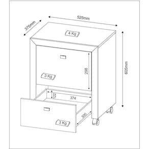 Dimensões do produto montado: Altura: 60,5cm | Largura: 52,5cm | Profundidade: 37,5cm *Você pode consultar as medidas internas na imagem técnica do produto. *As cores do produto podem sofrer variações de tonalidade de acordo com as configurações do seu dispositivo.