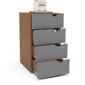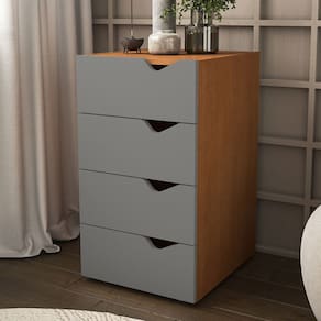 O(a) Gaveteiro Porto 4 Gavetas Porto Cinza/Freijó - Politorno é produzido em MDP na escala de brilho Semi-Fosco, e possui um grau de dificuldade de montagem: Fácil.