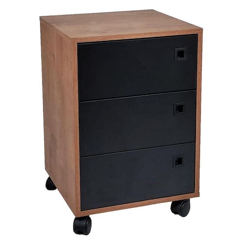 Sua estrutura é composta por chapa em MDP BP 15mm, puxadores embutidos em polímetro preto, rodízios de 63,5mm de altura e corrediças metálicas. Possui também 3 gavetas com medidas de 36x16cm cada.