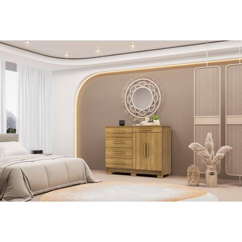 A Cômoda Sirius é ideal para quem busca funcionalidade e um design moderno. Seu tampo espaçoso permite organizar itens de forma prática, mantendo tudo ao alcance. Com 5 gavetas espaçosas, sendo uma delas especial para acessórios, todas com corrediças metálicas que garantem resistência e uma abertura suave. As duas portas laterais possuem uma prateleira interna ajustável, que pode ser removida conforme a necessidade, sendo um excelente espaço para sapatos ou outros objetos. Os puxadores em MDF revestido adicionam um toque de elegância. Os pés retangulares modernos elevam o móvel, protegendo da umidade, A Cômoda Sirius está disponível em cores modernas que complementam qualquer estilo de ambiente. Tudo isso para valorizar o seu lar e proporcionar uma excelente experiência de quarto!